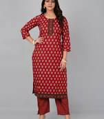 • Product Id : 4432003 • Package Details : 1 Kurta 1 Pant • Type : Cotton Kurtis • Region : India • Fabric : Cotton Silk • Work : Printed • Type : Floral Print • Look : Traditional • Sleeve : Quarter Sleeve • Neck Style : Round Neck • Color : Maroon • Stitching : Stitched Payments [+]