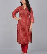 • Product Id : 4432005 • Package Details : 1 Kurta 1 Pant • Type : Cotton Kurtis • Region : India • Fabric : Cotton Silk • Work : Printed • Type : Floral Print • Look : Fashion • Sleeve : Quarter Sleeve • Neck Style : Round Neck • Color : Maroon • Stitching : Stitched • Side Slit : Yes Payments [+]