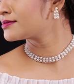 • Product Id : 3633420 • Package Details : 1 Necklace/1 Pair Earrings • Type : Chokers • Occasion : Wedding • Look : Designer • Jewellery Work : Pearl • Color : White • Plating : Rhodium • Base Material : Alloy • Certification : Brand Certification • Pearl Type : Freshwater • Pearl Shape : Button • Piercing : Yes • Speciality : Natural Fresh Water Pearls Choker Set With Certificate • Care : Protect It From Perfume, Water And Hard Chemical Substances And Paper Which Looses Colour Payments [+]
