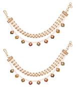 Gold Plated Traditional Multi Layered Pearl Ear Chain With Kundan Danglers For Women
