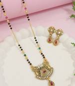 • Product Id : 4646043 • Package Details : 1 Necklace/1 Pair Of Earring • Type : Mangalsutra • Occasion : Wedding • Look : Traditional • Jewellery Work : Beaded Jewellery • Color : Multicolor • Plating : Yellow Gold • Base Material : Alloy • Piercing : No • Height : 1.0 • Width : 5.0 • Care : Keep The Jewellery Away From Direct Heat, Water, Perfumes, Deodorants And Other Strong Chemicals As They May React With The Metal Or Plating. Store The Jewellery When Not In Use In A Storage Box Or A Cloth Pouch To Retain Its Shine. Payments [+]