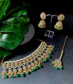 • Product Id : 4285459 • Package Details : 1 Necklace/1 Pair Of Earring/1 Maang Tikka. • Type : Chokers • Look : Traditional • Jewellery Work : Kundan • Color : Green • Plating : Yellow Gold • Base Material : Alloy • Pearl Type : Na • Pearl Shape : Na • Height : 18.0 • Width : 7.0 • Care : Keep The Jewelry Away From Direct Heat, Water, Perfumes, Deodorants And Other Strong Chemicals As They May React With The Metal Or Plating. Store The Jewelry When Not In Use In A Storage Box Or A Cloth Pouch To Retain Its Shine. Payments [+]