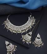 • Product Id : 4342272 • Package Details : 1 Necklace/1 Pair Of Earring/1 Maang Tikka. • Type : Jewellery Online • Look : Traditional • Jewellery Work : Gold Plated • Color : Grey • Plating : Yellow Gold • Base Material : Alloy • Pearl Type : Na • Pearl Shape : Na • Height : 12.5 • Width : 5.0 • Care : Keep The Jewelry Away From Direct Heat, Water, Perfumes, Deodorants And Other Strong Chemicals As They May React With The Metal Or Plating. Store The Jewelry When Not In Use In A Storage Box Or A Cloth Pouch To Retain Its Shine. Payments [+]