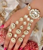 • Product Id : 4494392 • Package Details : 1 Hath Panja • Type : Haath Phool Hath Panja • Occasion : Casual • Look : Designer • Jewellery Work : Kundan • Color : White • Plating : Yellow Gold • Base Material : Alloy • Care : Store In A Cool, Dry Place. Avoid Contact With Water, Perfumes, And Harsh Chemicals. Payments [+]