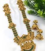 • Product Id : 4488718 • Package Details : 1 Necklace/1 Pair Of Earrings • Type : South Indian Jewellery • Look : Traditional • Jewellery Work : Gold Plated • Color : Green • Plating : Yellow Gold • Base Material : Alloy • Care : Store In A Cool, Dry Place. Clean With A Soft, Dry Cloth. Avoid Contact With Water And Perfumes. Payments [+]