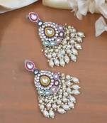 With their vibrant multi-stone accents, elegant shape, and pearl fringe, these earrings are designed to turn heads. Whether you're dressing up for a wedding or a festive event, these statement earrings bring out your inner diva with a perfect blend of tradition and glamour.Make every celebration unforgettable – order now and complete your ethnic look with elegance!