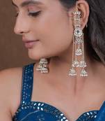 • Product Id : 4567985 • Package Details : 1 Pair Of Earrings • Type : Earrings • Look : Designer • Jewellery Work : Kundan • Color : White • Plating : Yellow Gold • Base Material : Alloy • Care : Store In A Cool, Dry Place. Avoid Contact With Water, Perfumes, And Harsh Chemicals. Payments [+]