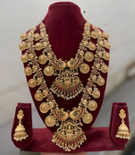 • Handcrafted multi-strand design with coin motifs and temple-inspired goddess pendants