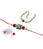 Combo Of Colorful Kundan Stone Rakhi N Onyx Pearl Bracelet For Bhaiya,Brother, Couple Pair Rakhi