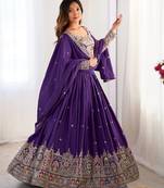 • Fabric : Silk • Work : Embroidered • Color : Purple • Length : 2.20 Mtr Lehenga Details