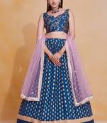 • Style : A Line Lehenga • Fabric : Georgette • Color : Blue • Work : Banarasi Blouse Details