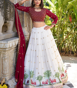 Off White And Maroon Georgette Embroidered Work Lehenga Choli