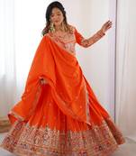 Orange Coding Dori With Sequin Embroidery Silk Lehenga Choli