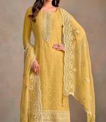 Yellow Organza Salwar Suit Zari Embroidery Semi stitched