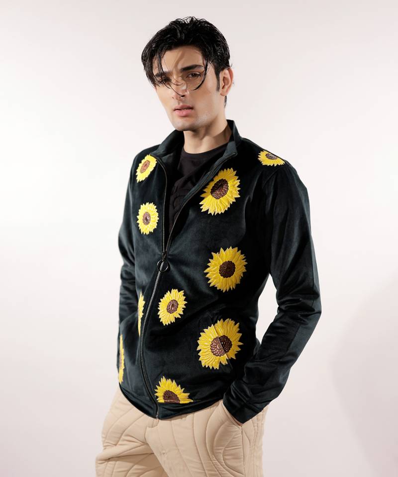 Bottle Green Italian Velvet Sunflower Quilted Jacket