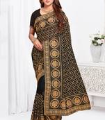 Designer Black Heavy Zari Embroidery Work Silk Saree