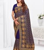 Designer Navy Blue Heavy Zari Embroidery Work Silk Saree