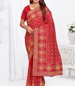 Designer Red Heavy Zari Embroidery Work Silk Saree