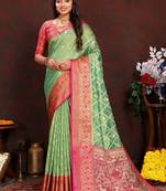 Green Meenakari Weaving Work Organza Silk Saree With Blouse Piece
