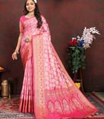 Pink Weaving Zari Work Organza Silk Party Wear Saree With Blouse