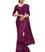 Purple Plain Lycra Saree With Blouse