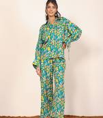 Green And Multicolor Floral Print Cotton Linen Blend Co Ord Set