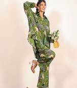 Green And Multicolor Jungle Theme Print Cotton Co Ord Set