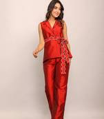 Maroon Red Solid Co Ord Set With Waist Tie Up Belt