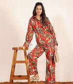 Red And Multi Jungle Theme Print Two Piece Set Co Ord Set