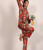 Red And Multi Tiger Printed With Kurta Style Co Ord Set