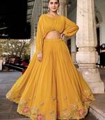 Mustard Georgette Embroidered Lehenga With Stitched Blouse