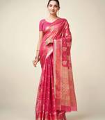 • Saree : Color- Rani Pink / Fabric- Organza • Blouse : Color- Rani Pink / Fabric- Organza Saree Details