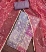 Women's Purple Viscose Organza Handwork Unstitched Dress Material