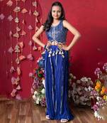 Royal Blue Silk Sequin Embroidered Kids' Sharara Set