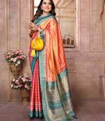 Orange Banarasi Tissue Silk Saree Patola Weaving Border And Contrast Woven Classic Pallu With Blouse