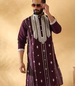 Cotton Silk Beads Work Zari Embroidered Sequin Wine Kurta