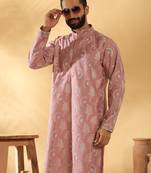 Cotton Silk Embroidered Floral Work Mauve Kurta With Trouser Pant