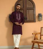 Cotton Silk Sequined Embroidered Yoke Design Wine Kurta