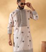 Paired with a sleek black cotton silk trouser pant, this set offers a modern yet traditional aesthetic. The trouser’s tailored fit provides comfort and ease of movement while complementing the embroidered kurta perfectly. Whether styled with ethnic footwear like mojaris or accessorized with a stylish watch, this ensemble is designed to make a lasting impression with its timeless elegance and superior craftsmanship.Specifications [-]