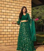 • Style : A Line Lehenga • Fabric : Georgette • Work : Embroidered • Color : Green Blouse Details