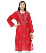 Red Embroidered Cotton Chikankari Kurtis