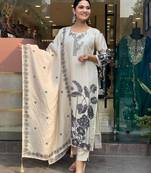 Bring effortless elegance to your ethnic wardrobe with this cream floral printed three-piece salwar kameez set, crafted in flowy Chinon fabric. With a flattering A-line straight Long Kurti and a beautifully printed matching dupatta, this look is your go-to for both casual chic and festive glam.