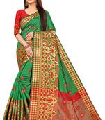 • Saree : Color- Dark Green / Fabric- Silk Blend • Blouse : Color- Red / Fabric- Silk Blend Saree Details