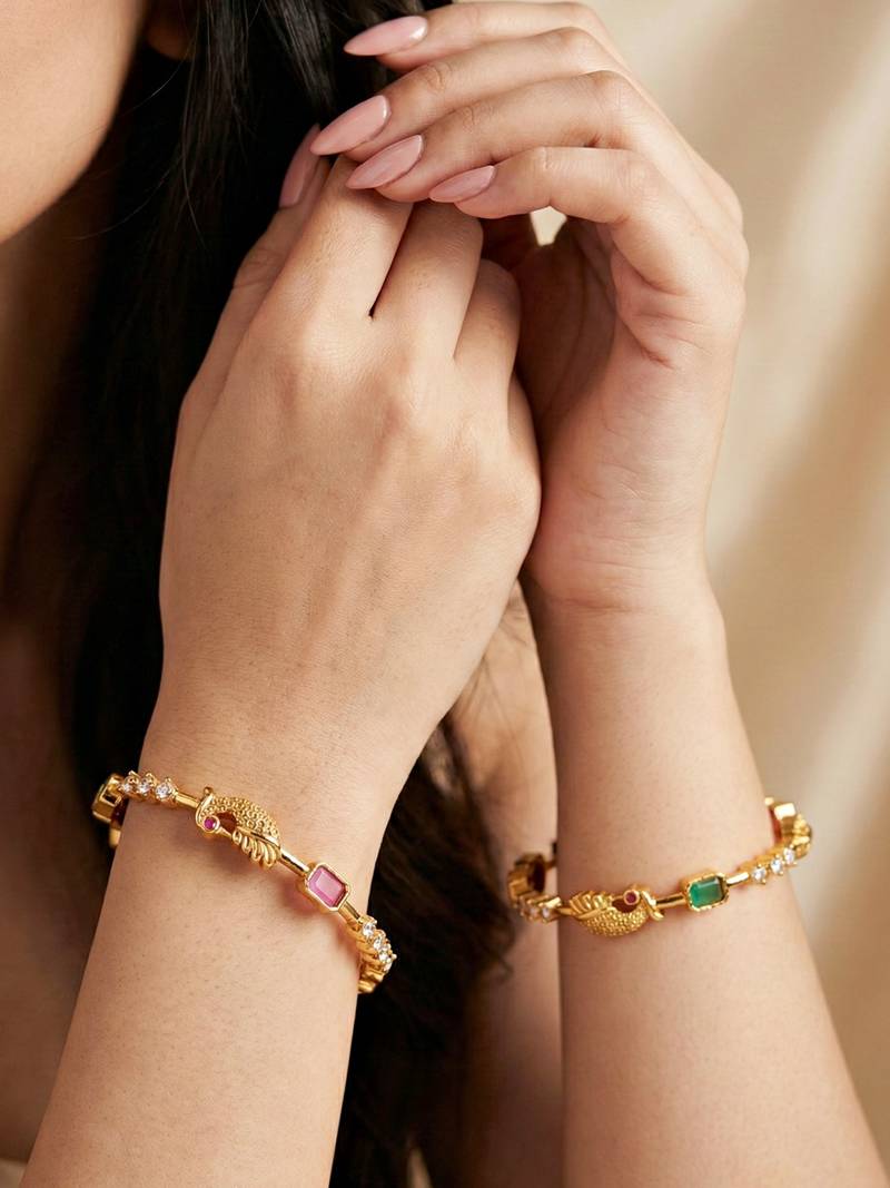 If you find the product for less we'll match it! Know MoreLucky Jewellery Gold-Plated Laxmi Temple AD Pink Green Bangle (1193-C1BG-2216-2)