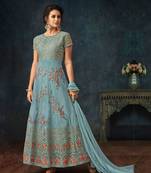 Sky Blue Net Thread Floral Embroidered Salwar Suit Semi stitched