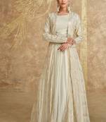 Off White Embroidered Georgette Free Size Stitched Circular Lehenga.(Size Up To 42")