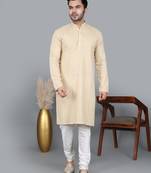 Men's Gold Cotton Chikankari Embroidered Kurta With Cream Churidar (Rg 50712 36)