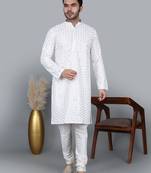 Men's White Sequence Tread Work Kurta With White Churidar (Rg 50717 36)