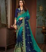 Blue Embroidered Chiffon Saree With Blouse