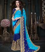 Manohari Blue Embroidered Georgette Saree With Blouse
